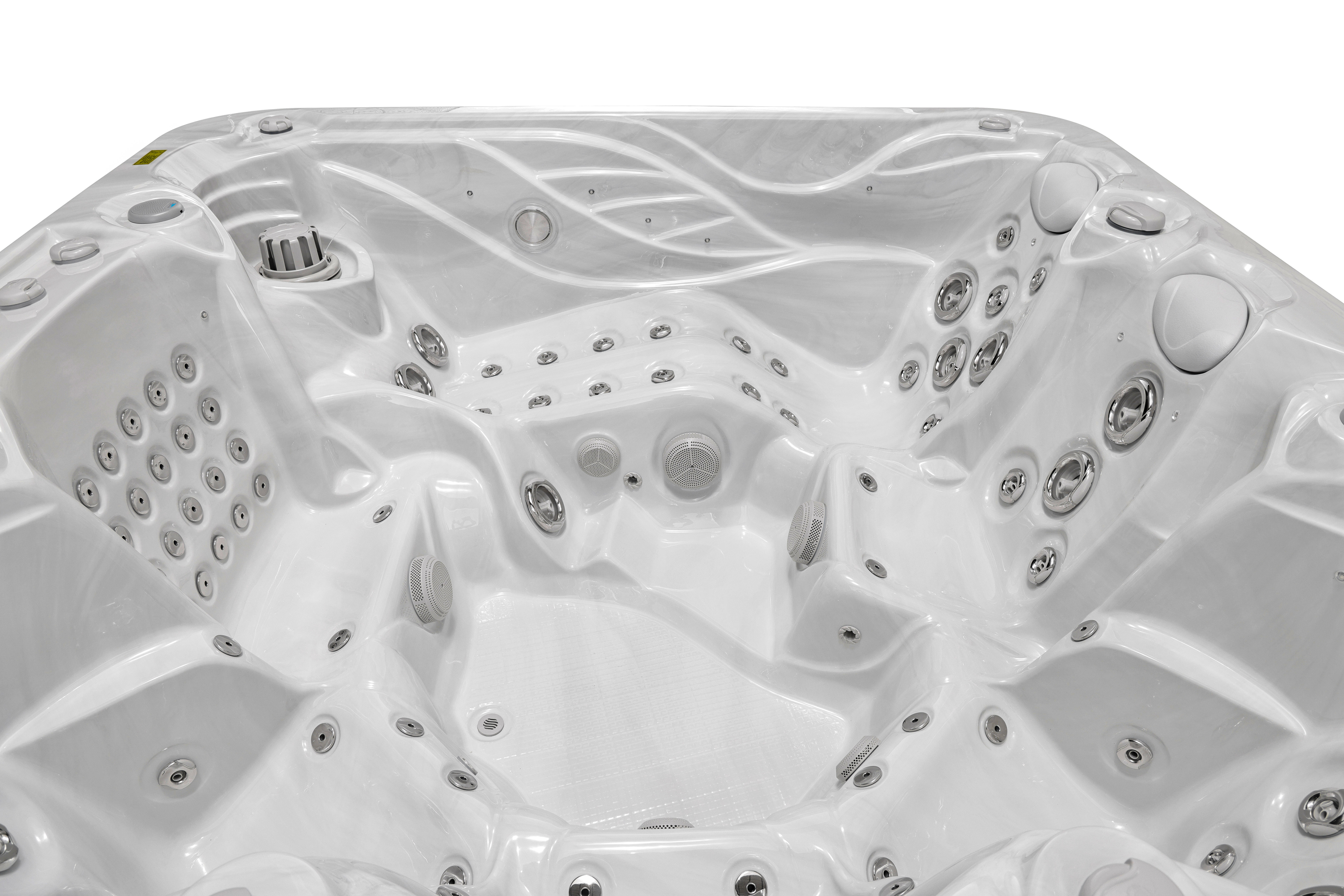 Чаша вашего спа-бассейна изготовлена из Lucite® Sterling Silver — это не просто акрил, а эталонный материал премиум-класса, производимый в США по запатентованным технологиям. В отличие от обычного акрила, который со временем может терять прозрачность и желтеть, Lucite гарантирует: